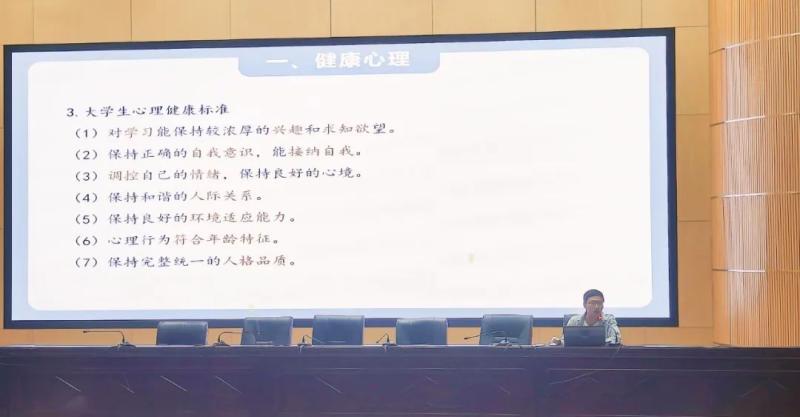 本次讲座由学校黄金、张泽云两位心理健康教师主讲。黄金老师以“认识心理表现 培养健康生活”为主题,从健康心理的概念引入课题,从健康与异常心理的区分、识别典型异常心理表现、异常心理调适建议、追求幸福和职业生涯等四个方面进行讲解。