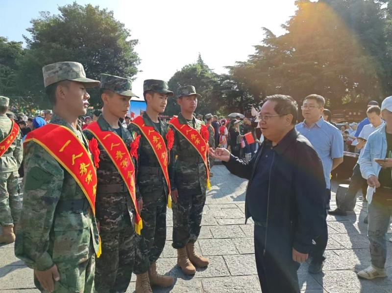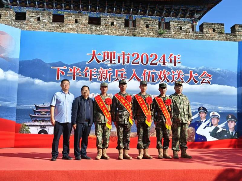 9月14日上午,我校和艳林等4名应征入伍的学子,参加大理市在大理古城举行的2024年下半年新兵入伍欢送大会,热烈欢送新兵踏上军旅生涯。我校和艳林、蔡王风、周进清、李嘉晨等4名学子历经初筛、体检、复检、政审及役前训练等重重考验,脱颖而出,和艳林光荣地成为中国人民解放军的一员,蔡王风、周进清、李嘉晨光荣地成为中国人民武装警察部队的一员。校党委委员、副院长郭向周,学生科科长陈勇和武装部专职武装干事张尔虎代表学校到大理古城欢送现场,向即将踏上军旅征程的学子们致以亲切的问候和崇高的敬意,鼓励他们以青春之名,书写报国华章。