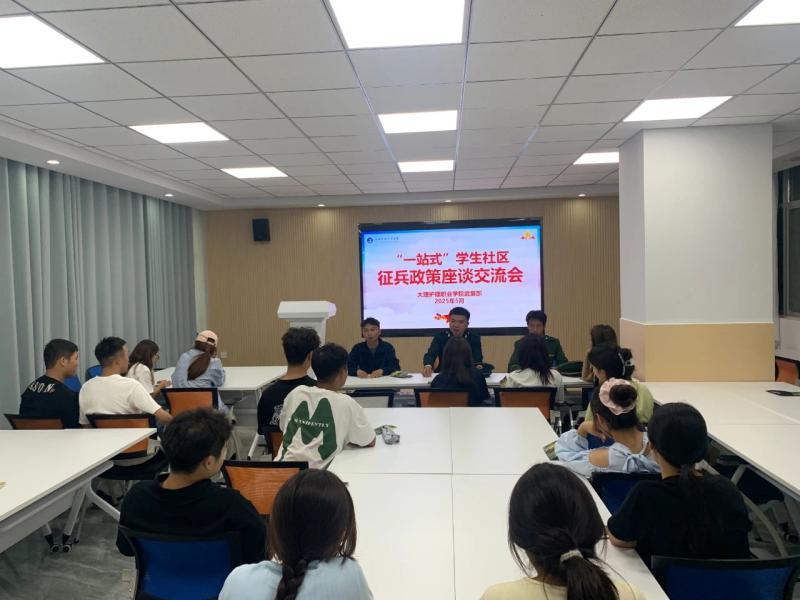 5月22日晚,bat365官方官网在“一站式”学生社区举办2025年征兵政策座谈交流会。活动邀请了我校退伍军人杨洪多同学、刘万洪同学和朱健云同学,为有强烈入伍意愿的同学进行再动员,并分享入伍经验,解答同学们的疑问。