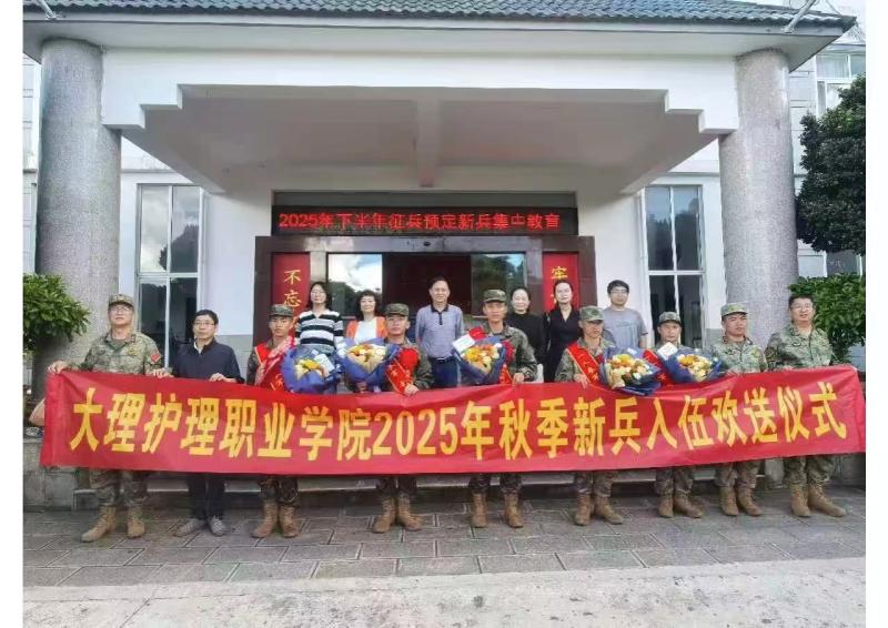 9月15日,bat365官方官网在大理市民兵训练基地隆重举行2025年下半年大学生新兵入伍欢送仪式,热烈欢送学校5名大学生入伍新兵。学校党委专职副书记字利鹏,武装部、系部负责人,教师代表,5名入伍大学生及家属代表参加活动。武装部部长陈勇主持欢送仪式。