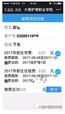 4、 点击“查询”按钮,可以查询到许缴费信息