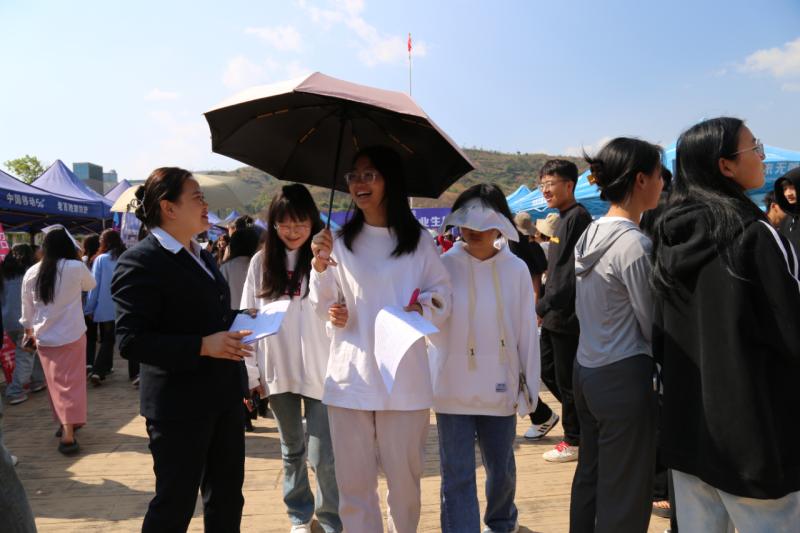 4月26日上午,bat365官方官网2024届毕业生校园招聘会在南校区知行广场举行。本次招聘会采用线下结合线上的方式开展,邀请了云南一心堂药业集团股份有限公司、保山护颐康养科技有限公司等40余家用人单位参加,提供招聘岗位超500余个,为即将走出校门的毕业生提供了与用人单位面对面交流的机会,也为企业选拔优秀人才搭建了平台。